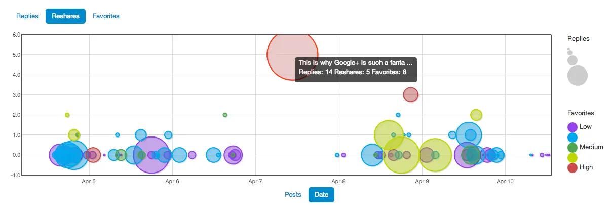 Google plus social media communities analytics - posting density