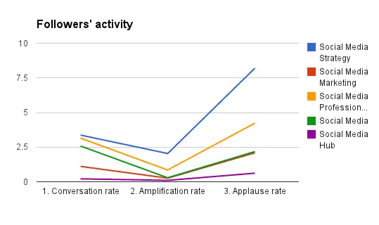 Note: Conversation rate - #comments per post, Amplification rate - #shares per post, Applause rate - #likes per post. More about these metrics.