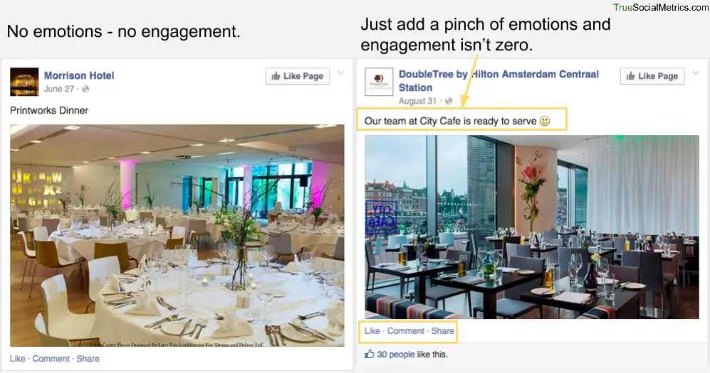 However, some hotels from the chain don’t follow this strategy, like, for example, DoubleTree Alexandra Barcelona. Their posts feel very distant, cold and emotionless. In addition, new posts are only added rarely, which adds to their low performance on Facebook in comparison to other hotels from the chain. Just compare the posts of the 2 hotels Amsterdam’s and Barcelona’s, you can easily spot which is which: