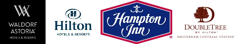 1. Hilton group hotels in Amsterdam (4 accounts): Waldorf Astoria Amsterdam, Hilton Amsterdam, Doubletree Amsterdam, and Hampton.