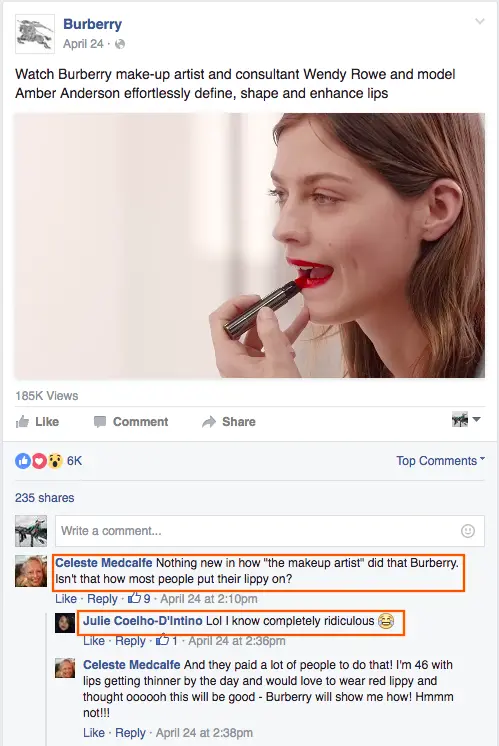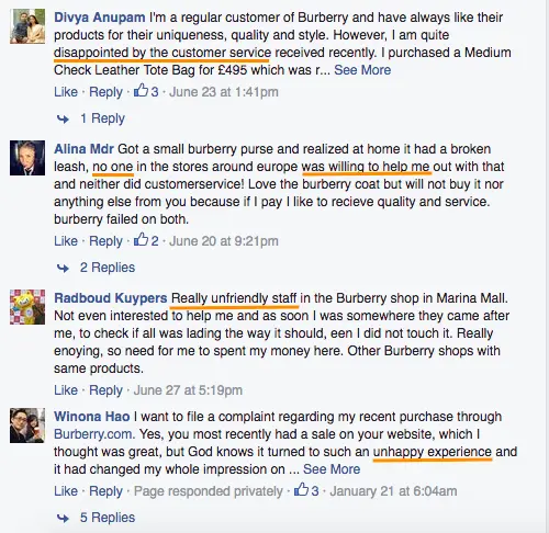 In short words, here’s how Burberry’s Facebook fans probably feel: