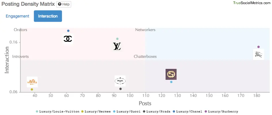 Good job, Burberry. And even better job, Chanel and Louis Vuitton - they are true orators. Posting 3 and 2 times less than Burberry they managed to get 30% and 70% higher Engagement respectively. Which means they are spending less resources on content creation but are still getting more attention.