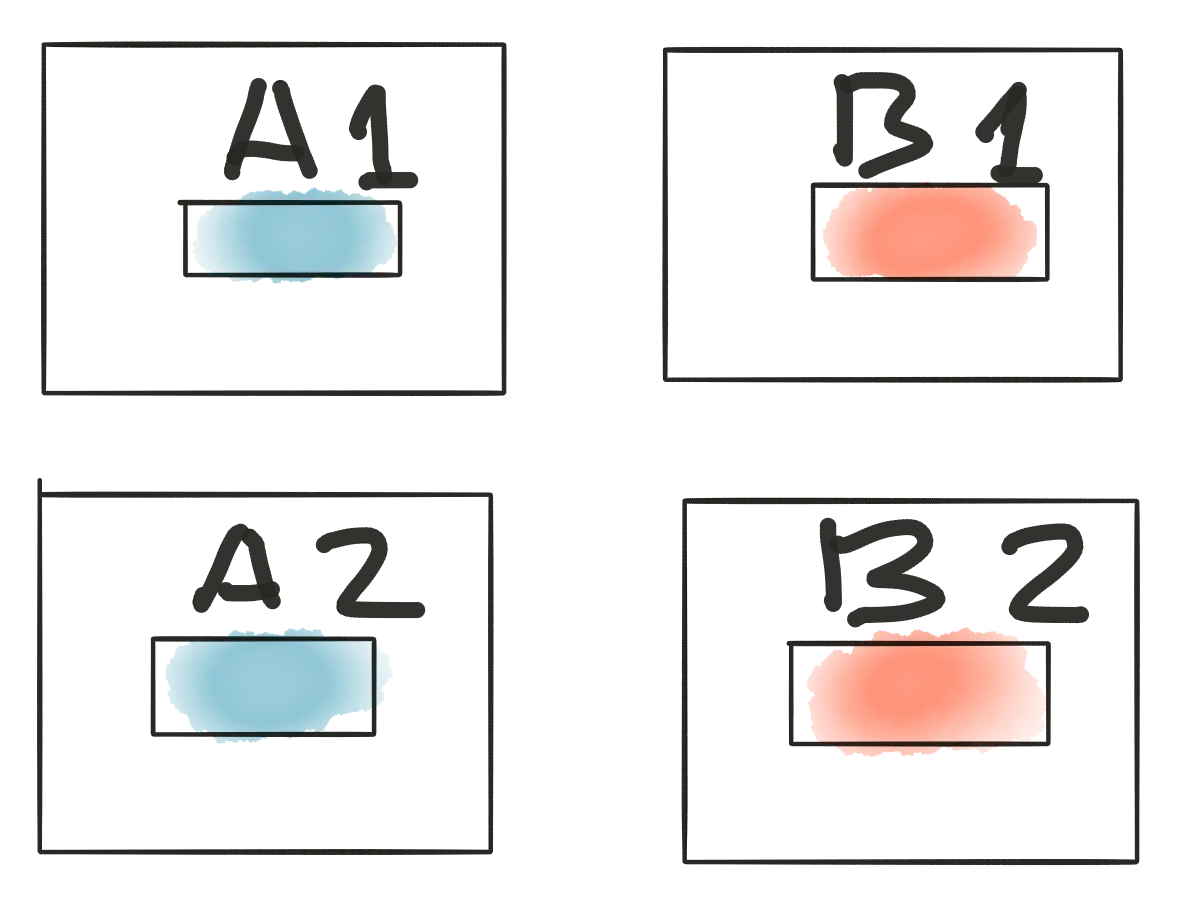 The classic A/B testing is a distribution between a different states. Let’s start from a general sample everyone uses. We have a site with a signup button, currently it’s blue, but we want to test a new color red.