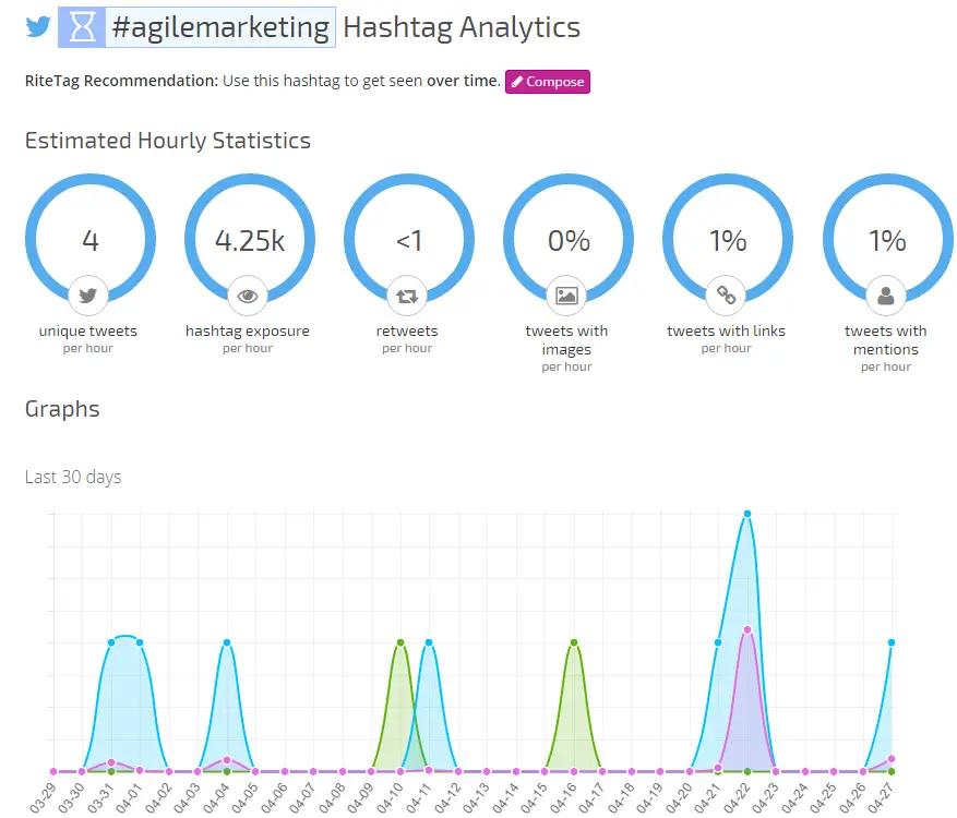 • RiteTag This tool is your personal trainer that will help you resist the pull of your competitors and choose the right hashtags for you. The moment you sign in with your Twitter account, RiteTag starts analyzing your hashtags and their effectiveness. Improve your marketing reach with this great instrument!