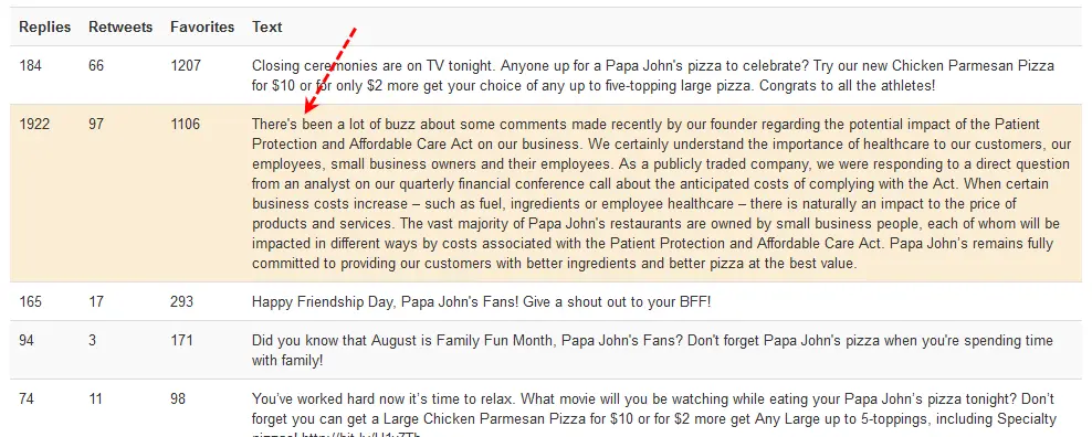 Looks like Pizza Hut is #1 not only in pizza, with very promising and balanced stats in all three metrics. Surprisingly, Domino's are totally leading in Applause rate. Although sadly that’s in huge disproportion to the Conversation and Amplification rates. Lots of Likes means that they have an emotional content, which is good for creating loyalty to the brand, since with a higher level of loyalty, the customer lifetime value is longer and creates higher profits for the company. On the other hand, liking is the least engaging activity a fan could do, when compared to commenting and sharing. So Domino's should consider using posts that are more engaging to its fans. Papa John's social activity looks dangerous. Why do people comment but not share or like? Maybe they use company's page for complaints? Regardless, having only 20-30 shares for posts that promote discounts is strange for a page with 2 million fans.