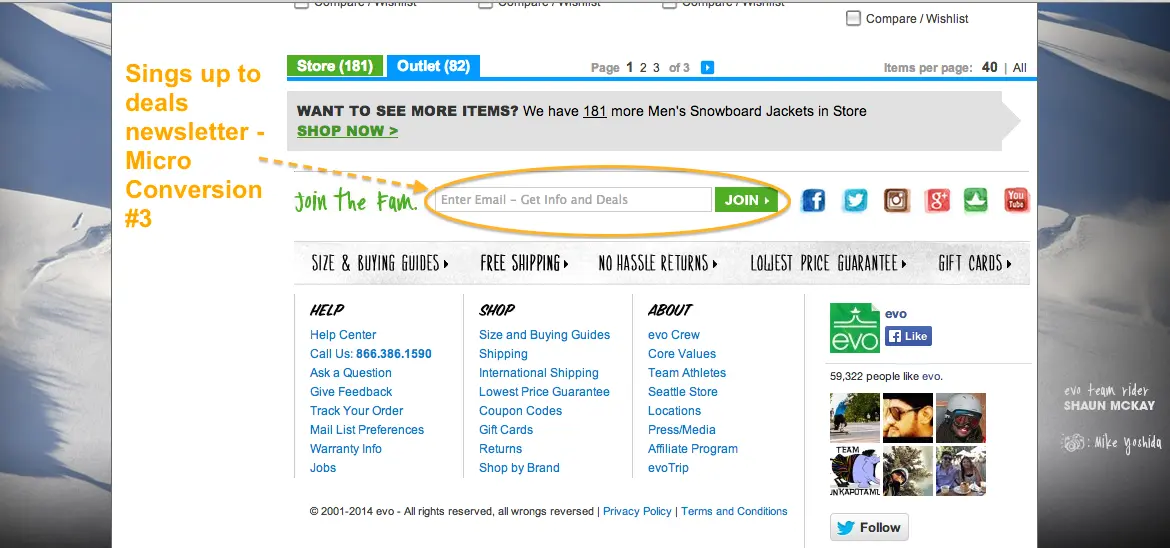 He then subscribes to your promotions newsletter, because he doesn’t want to miss out on a good discount (Micro conversion #3).