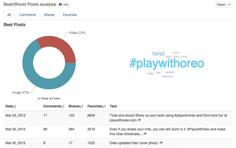 Find out which posts are the best at engaging your followers: which are triggering a conversation, or are more likely to be shared or favorited.