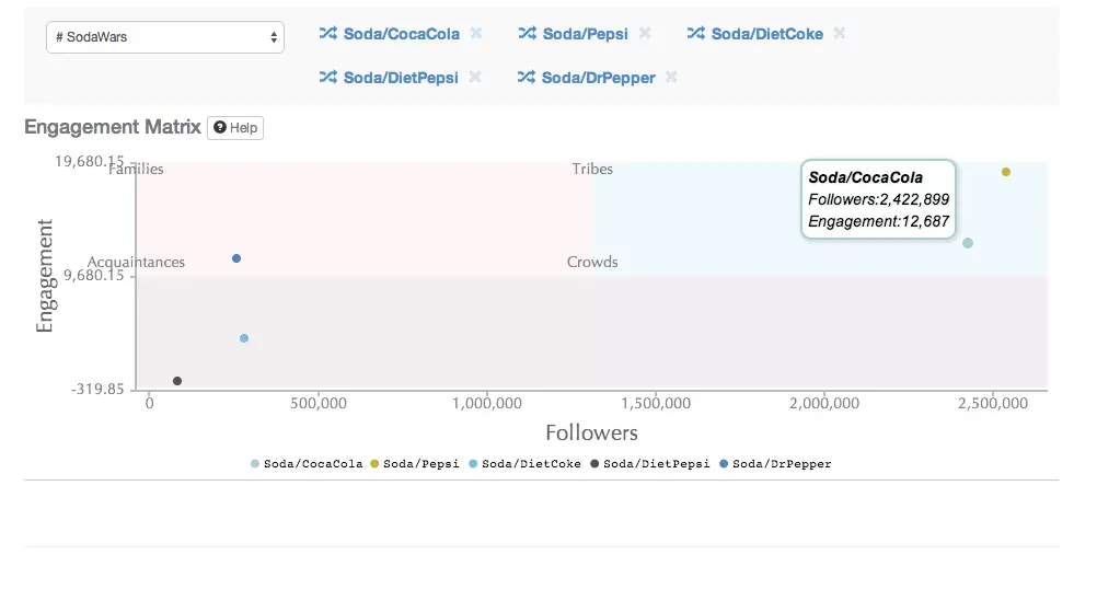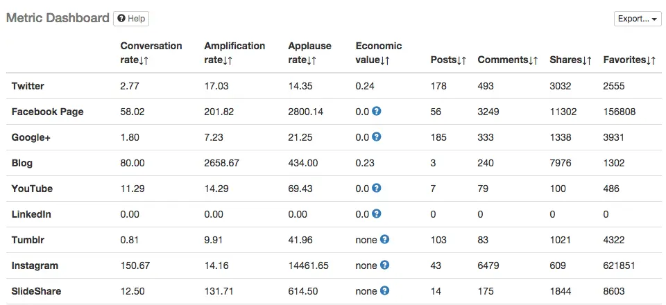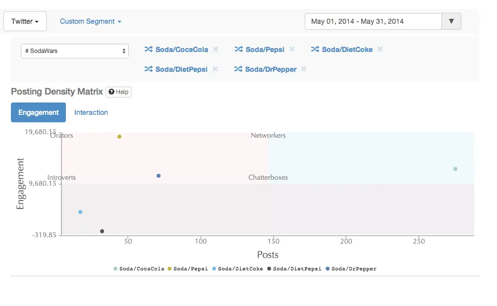 Engagement and Interaction rates analytics will help you to instantly compare several accounts performance using compound Engagement or Interaction values for all social interaction summarized.
