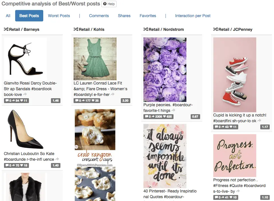 Analyze your competitors' best/worst posts and compare with your own content strategy. Borrow great posts ideas from your rivals and get insights how to engage your followers more.