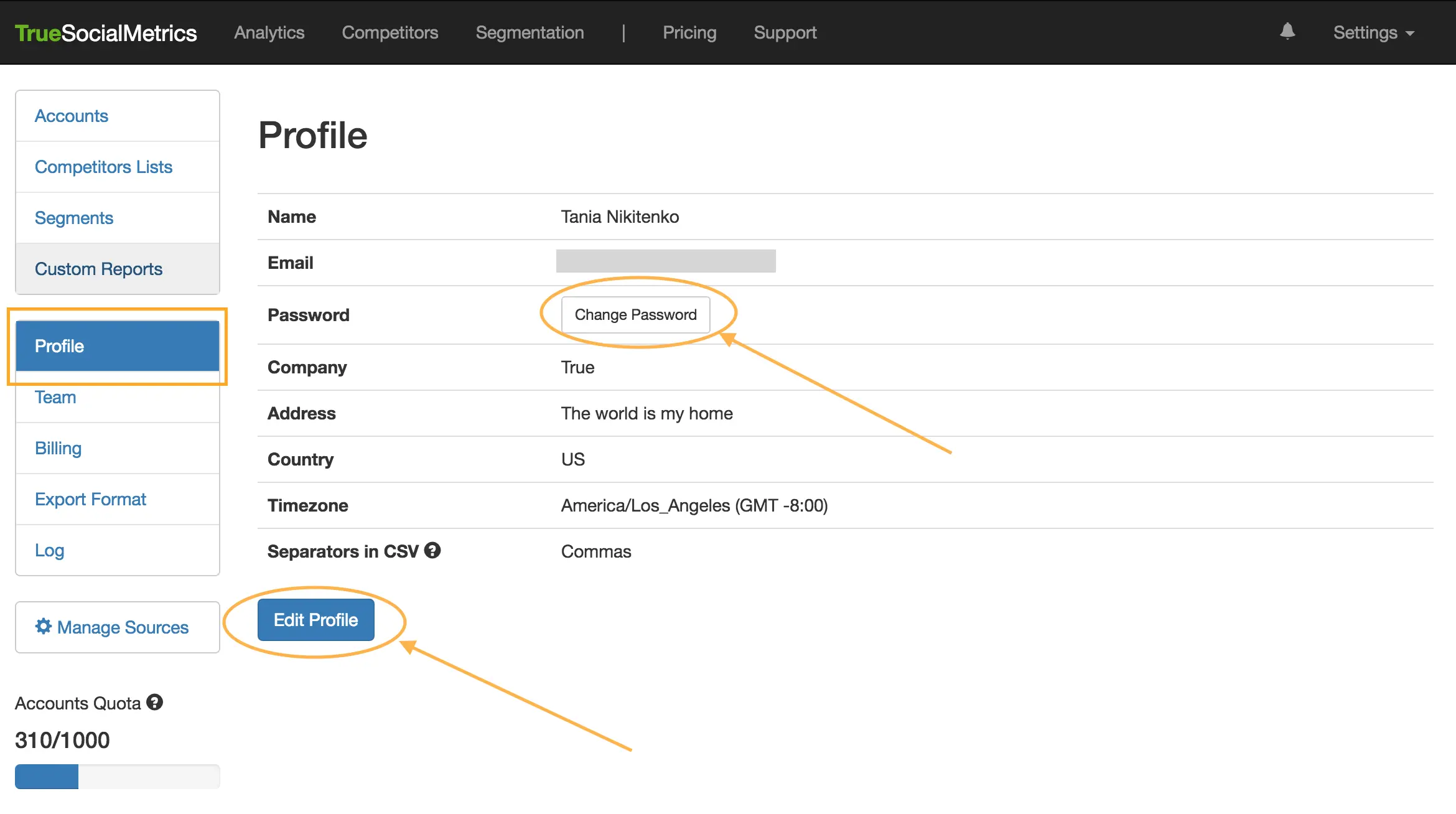 Go to your Settings -> Profile page and click on the 'Edit Profile' button to change email. Or click on "Change Password" button to change password.