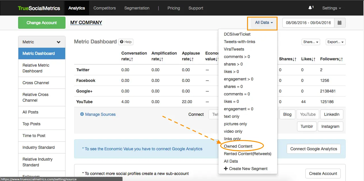For some social networks (Blog, YouTube, Linkedin, Tumblr, Instagram, Slideshare, Vine, Vimeo) we additionally collect data from other places besides the channel (e.g., Disqus, Delicious, StumbleUpon, Reddit, Digg).