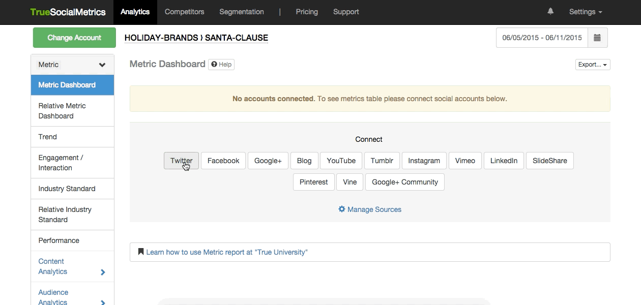 If you don't have an account on TrueSocialMetrics just start our 30-Days Free Trial (no credit card required).
