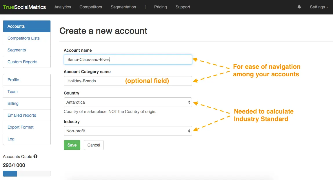 Only the ‘Account Category’ field is optional and it is used for ease of navigation in your accounts list (read how to benefit from the 'Category' field). The ‘Country’ and ‘Industry’ fields are obligatory and are used to gather anonymous statistical information for calculating Industry Standards and providing you with useful industry reports. Don’t forget to Save the form.