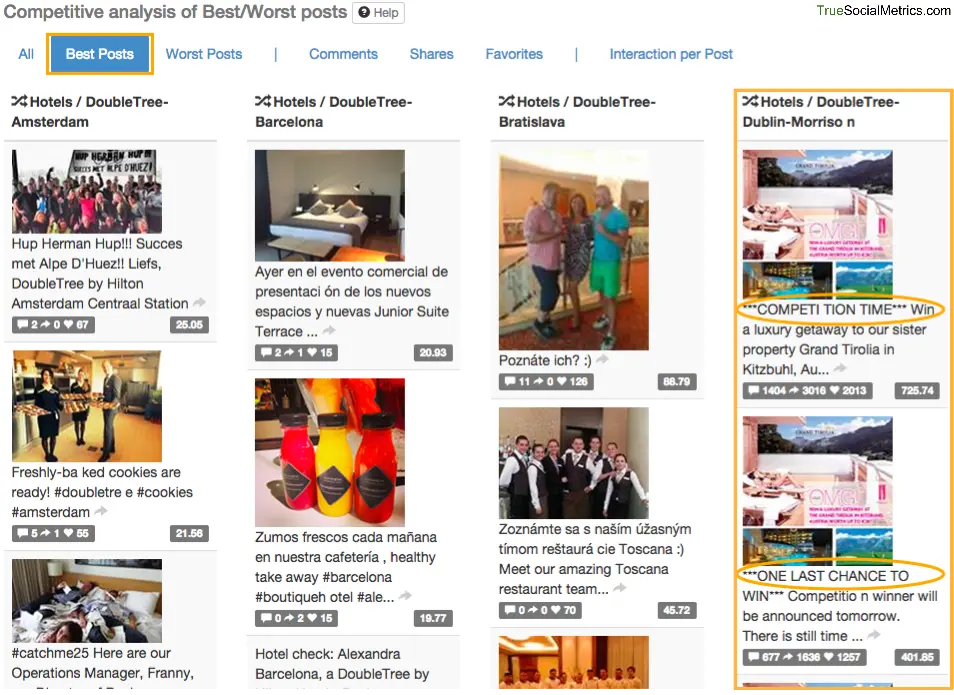 Use Competitors’ Posts report to analyze your competitors best/worst posts and compare with your own content strategy. Borrow great ideas from your rivals and get insights how to engage your followers more.