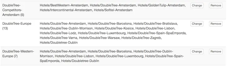 For example, we created three competitors lists for DoubleTree by Hilton Hotel in Amsterdam to analyze it in several different contexts. At the end of the day we’ll have three different standards to compare with and three sources for benchmarking: competitors, sister-hotels from Hilton group and other branches of DoubleTree hotel. Here’s the lisf of our three Competitors Lists: